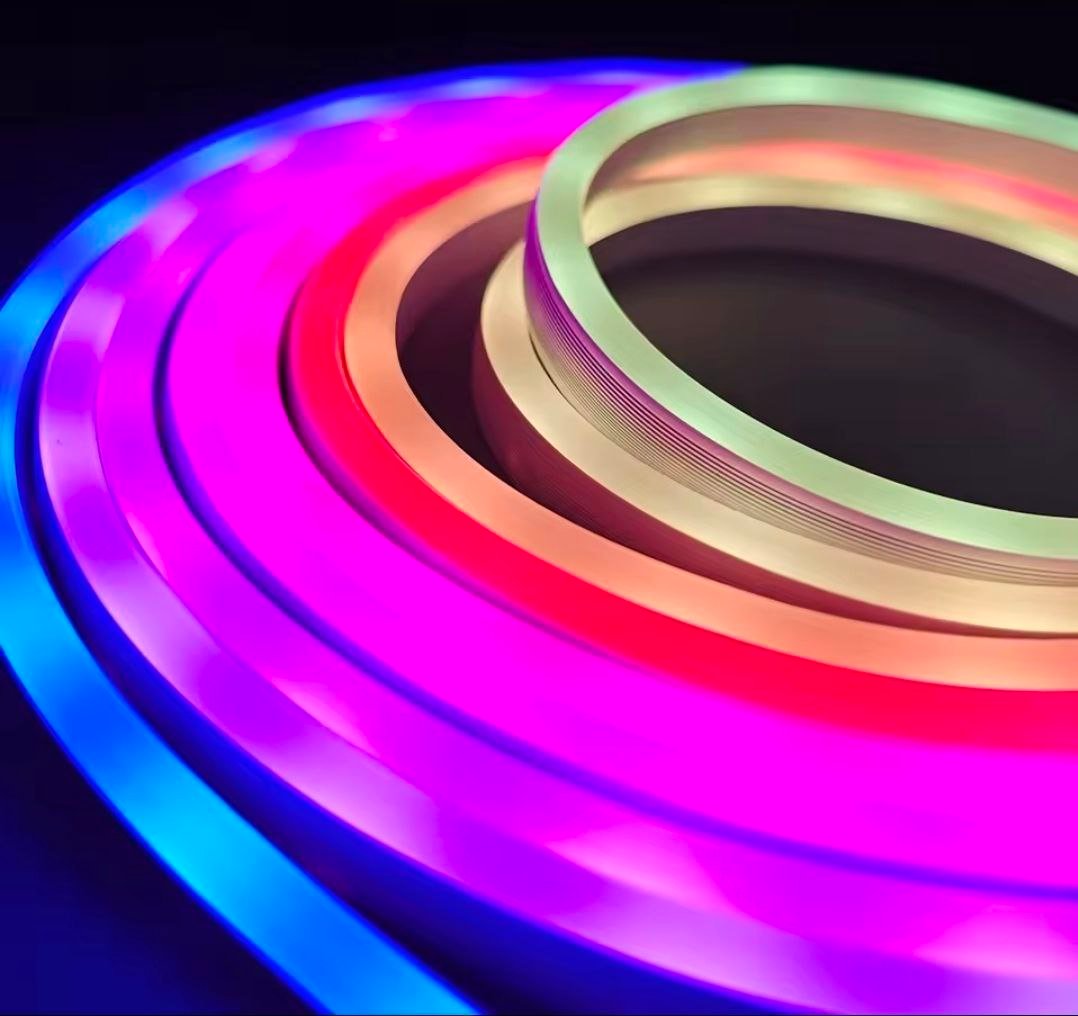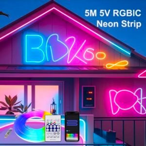 أضف لمسة عصرية نابضة بالحياة إلى مساحاتك مع شريط إضاءة نيون RGB LED بطول 5 أمتار. يتميز هذا الشريط بمرونته ومتانته، وهو مثالي لتزيين المساحات الداخلية والخارجية: الحدائق، غرف النوم، غرف المعيشة، الأفنية، الحفلات، أو حتى واجهات المحلات.